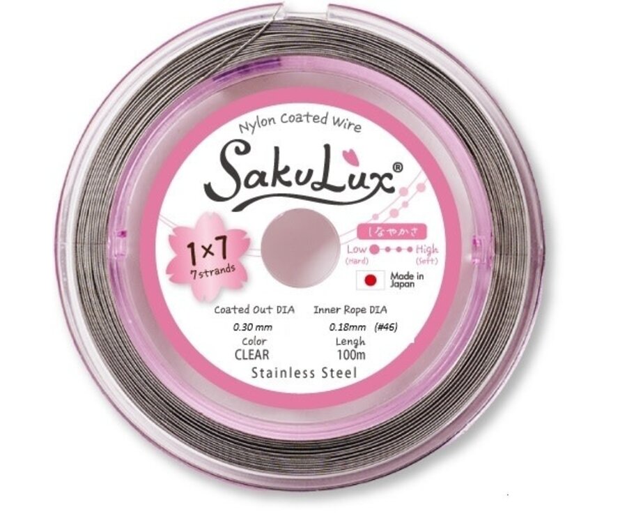 7 Drähte sind stark und flexibel und knickfest. Basis: Edelstahl, Beschichtung: Nylon.