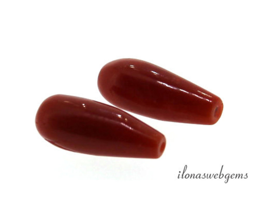 1 Paar rote Korallen 'Corallium Rubrum' Perlen ca. 12x6mm