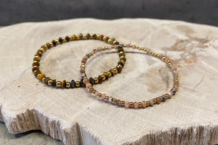 Armband aus Tigerauge und Rhodochrosit mit Hämatit, Wert 45,00 €