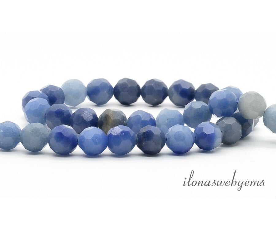 Blaue Aventurinperlen, rund facettiert, ca. 8 mm