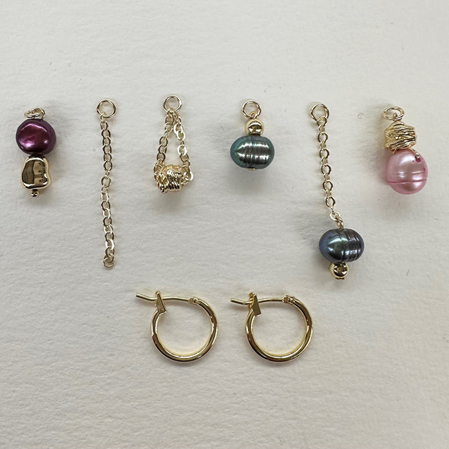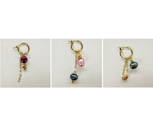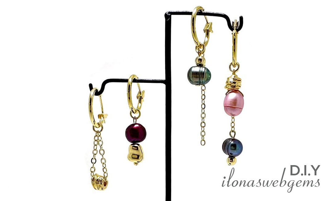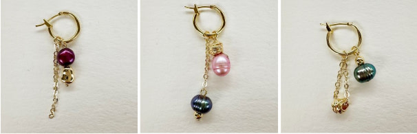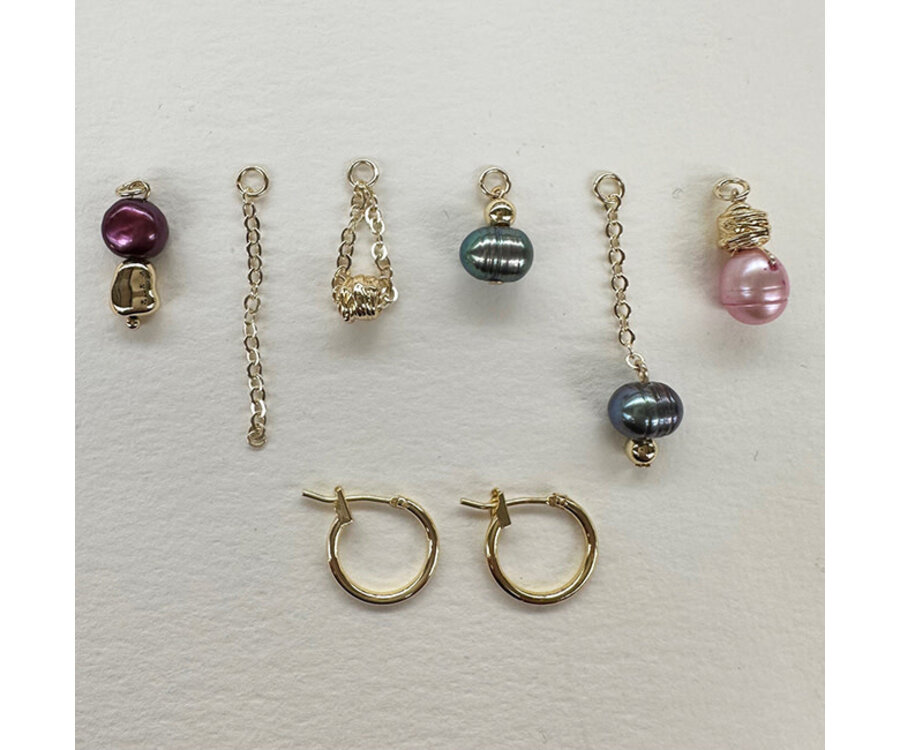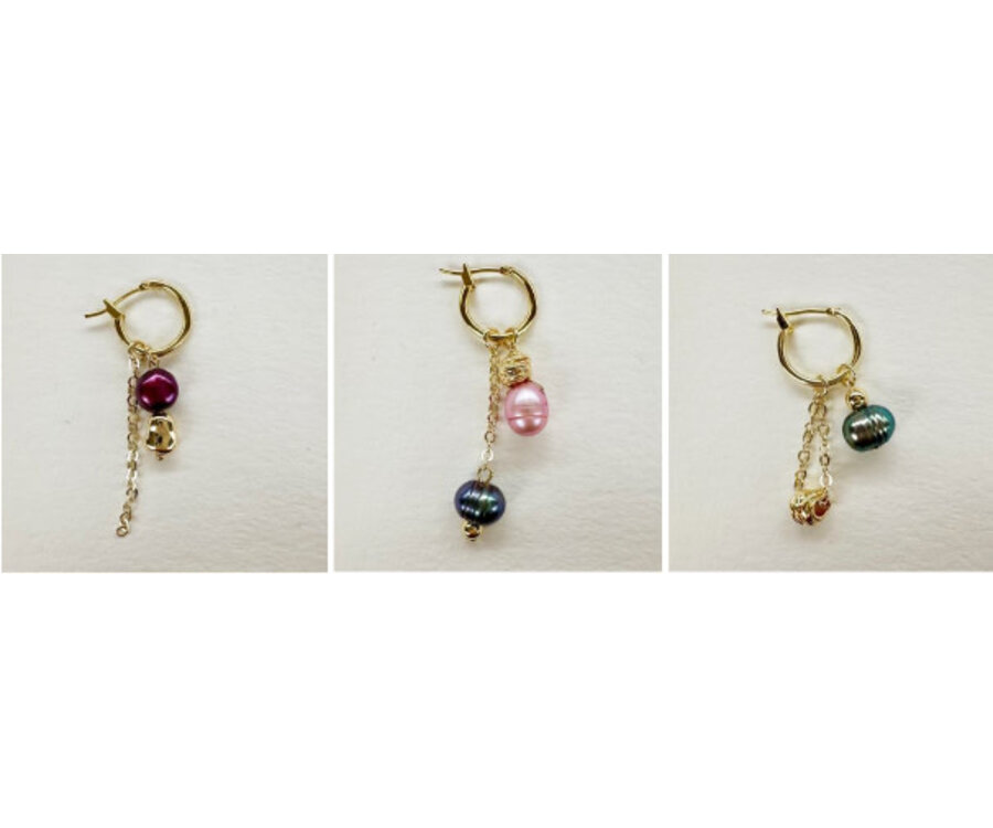 Farbige Süßwasserperlen wurden zu 3 wunderschönen Anhängersets verarbeitet, die Sie mit Ihren Premium-vergoldeten Creolen (14 mm) tragen können.