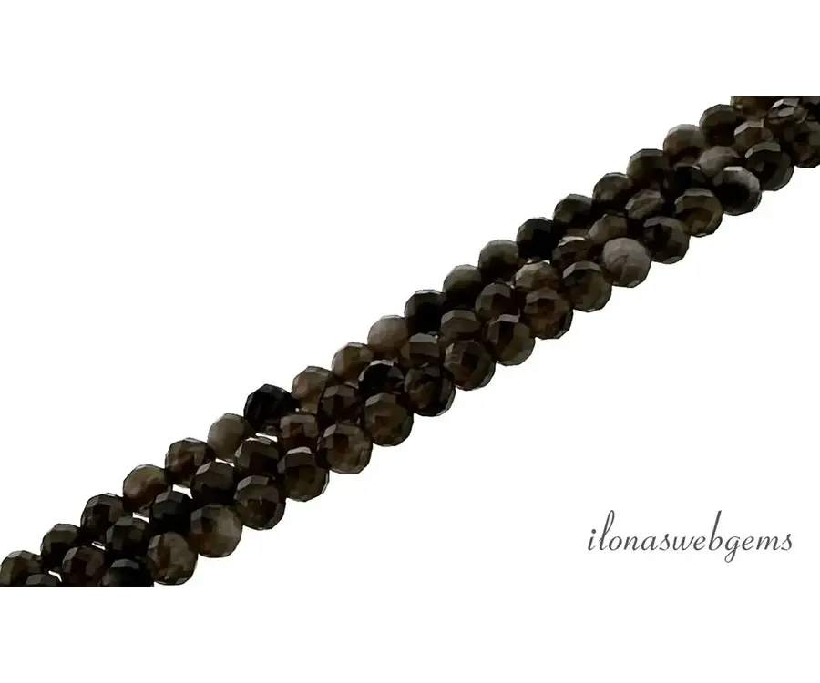 Silver Obsidiaan kralen rond ca. 2mm AA kwaliteit slijping