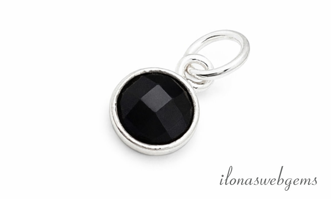 Sterling zilveren hangertje met facet Onyx ca. 6mm