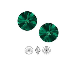 2 pieces Swarovski Rivoli pointstone 1122 / 12mm Emerald F