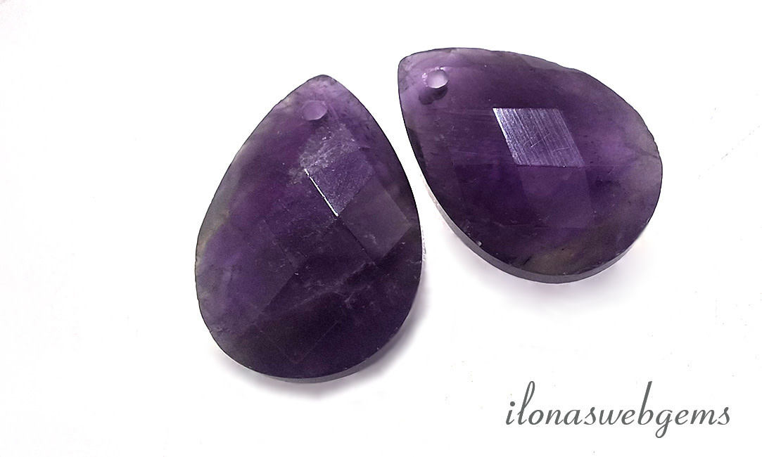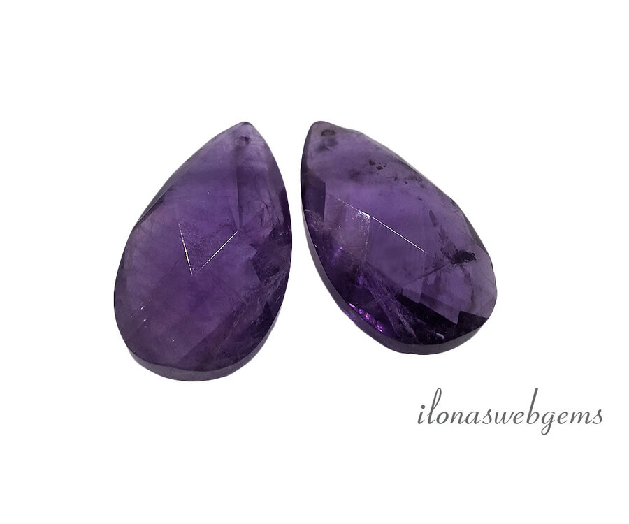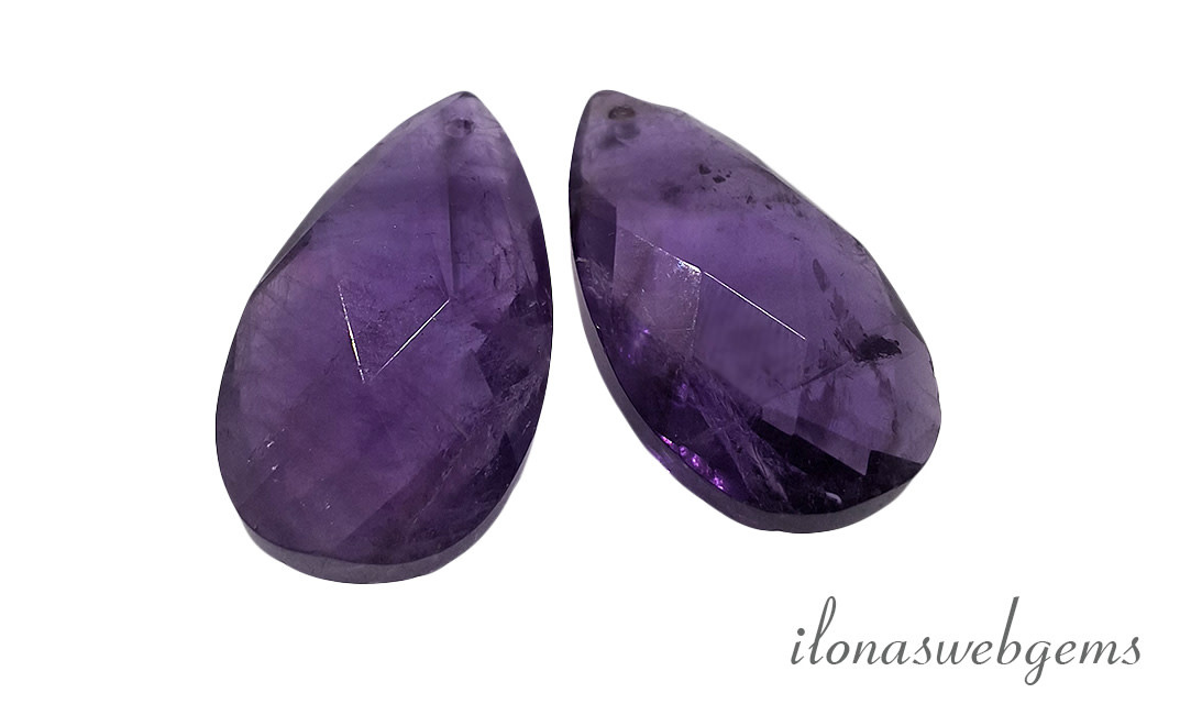 1 paar Amethyst druppels facet ca. 18x13x6mm