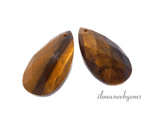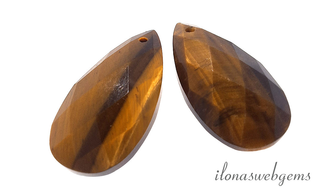 1 paar Tijgeroog druppels facet ca. 25x13x6mm