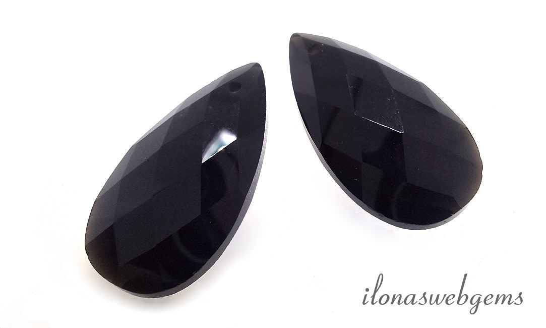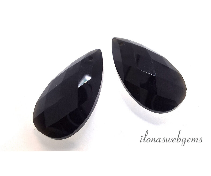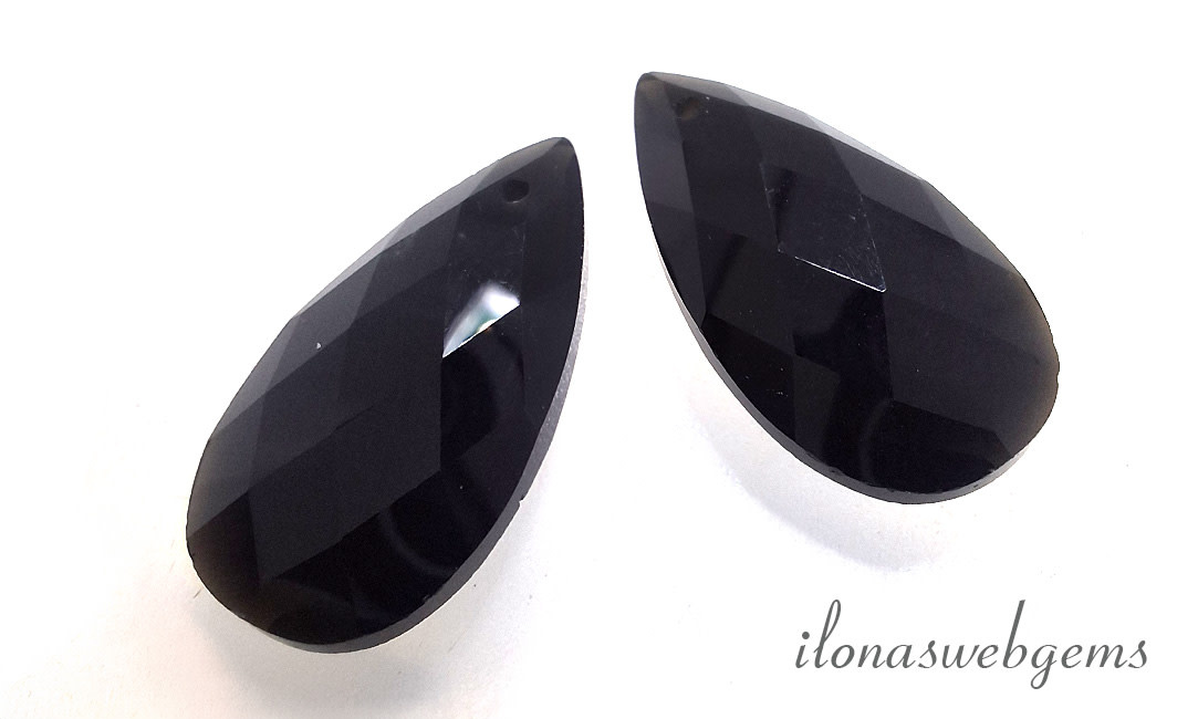 1 paar Onyx druppels facet ca. 25x13x6mm