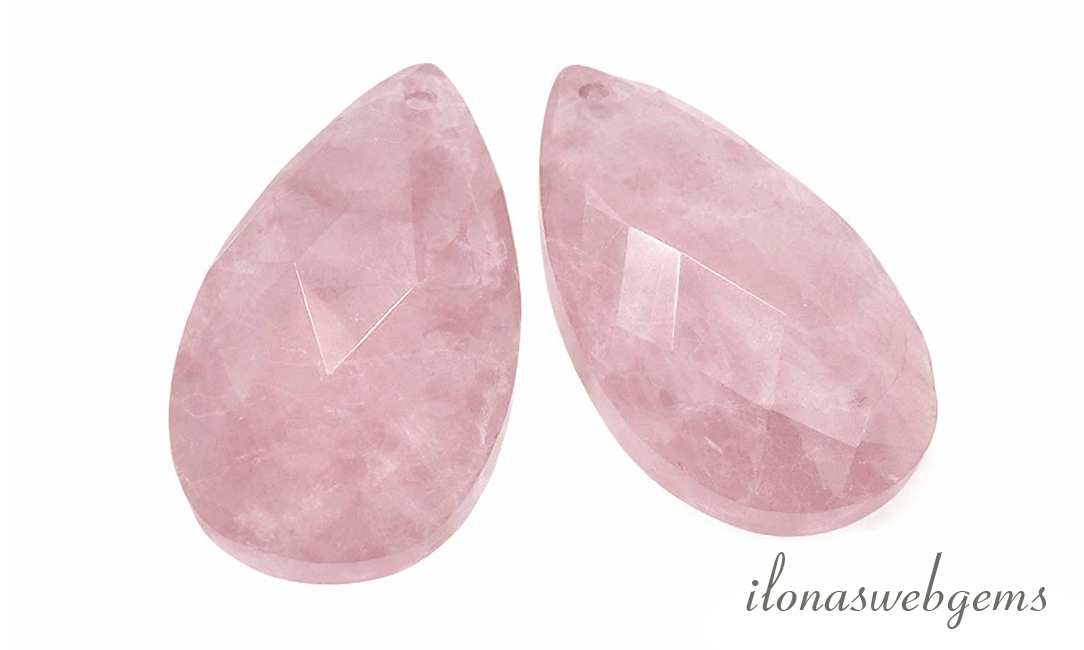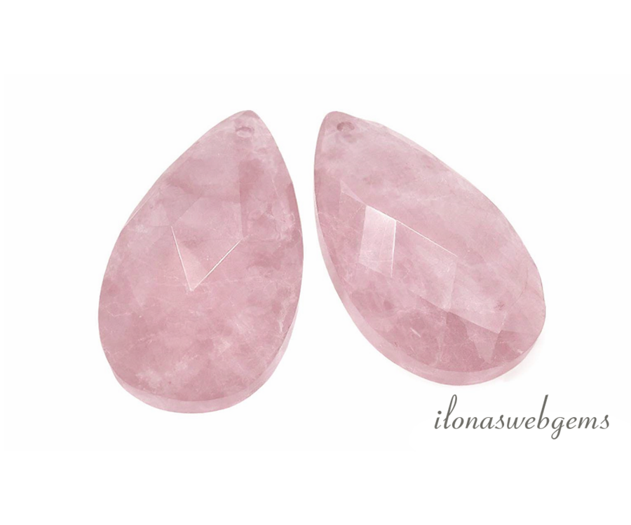 1 paar Rozenkwarts druppels facet ca. 18x13x6mm