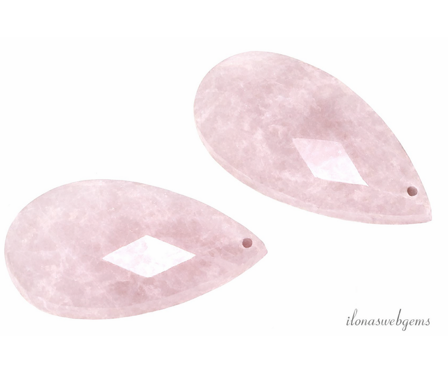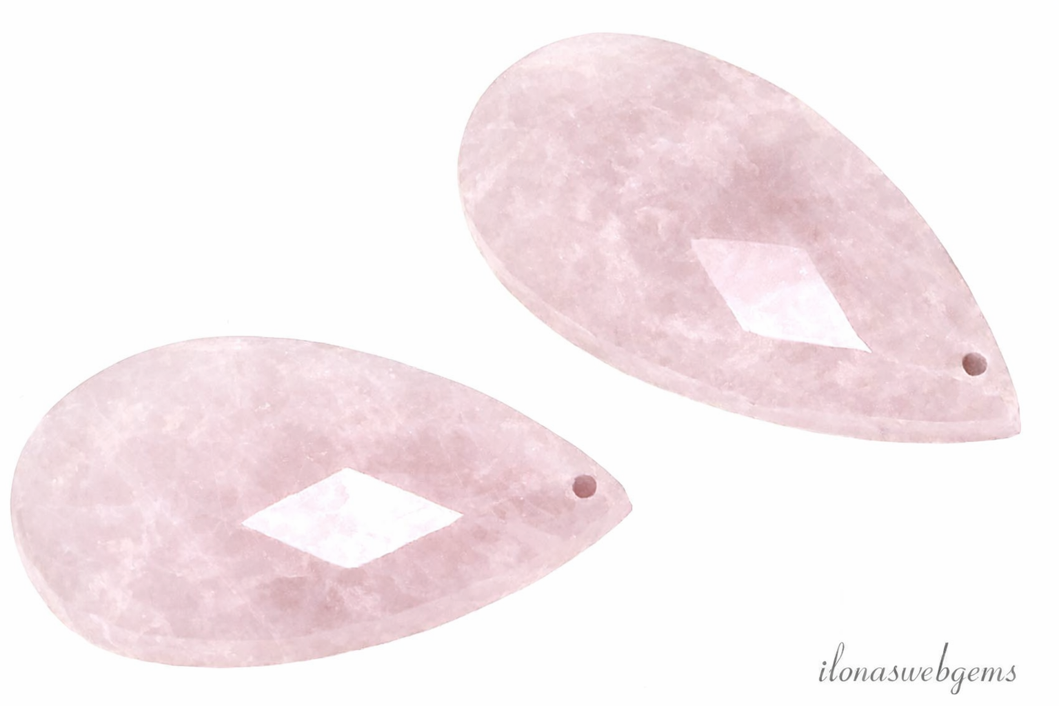 1 paar Rozenkwarts druppels facet ca. 25x13x6mm