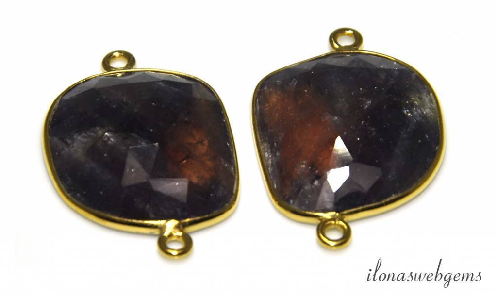 2 Vermeil connectors met Saffier ca. 28x17mm