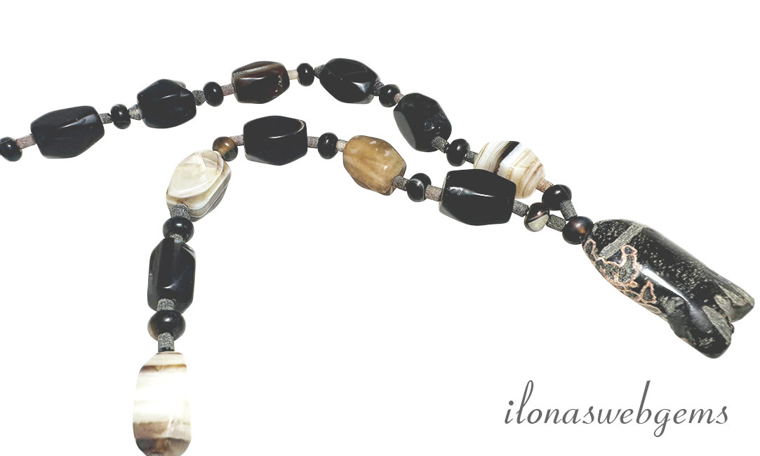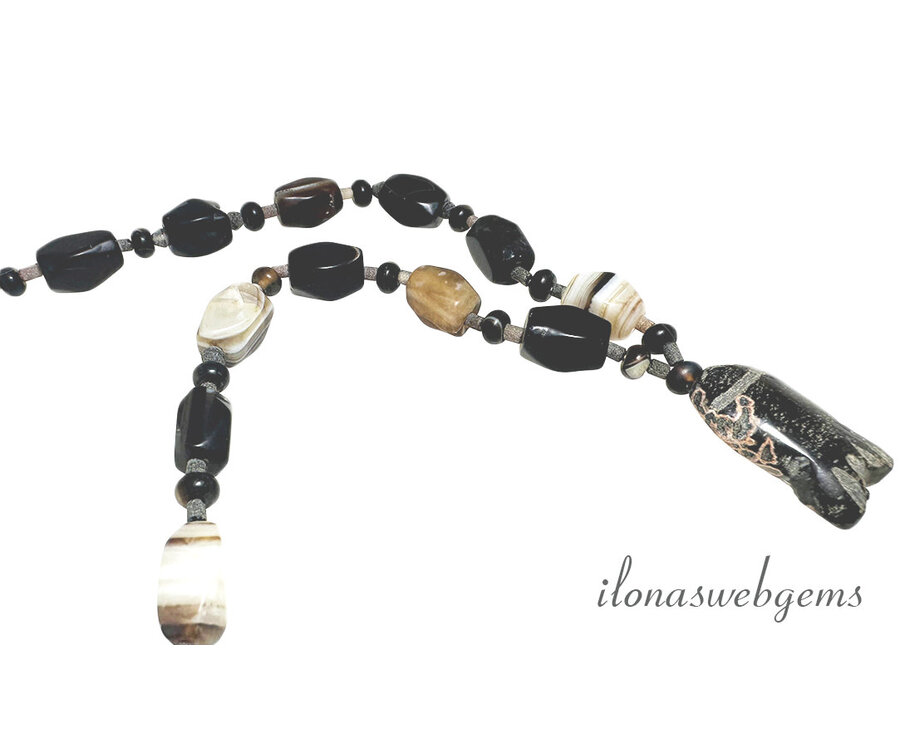 Agaat bruin met bedel zijderoute ca. 19x9mm
