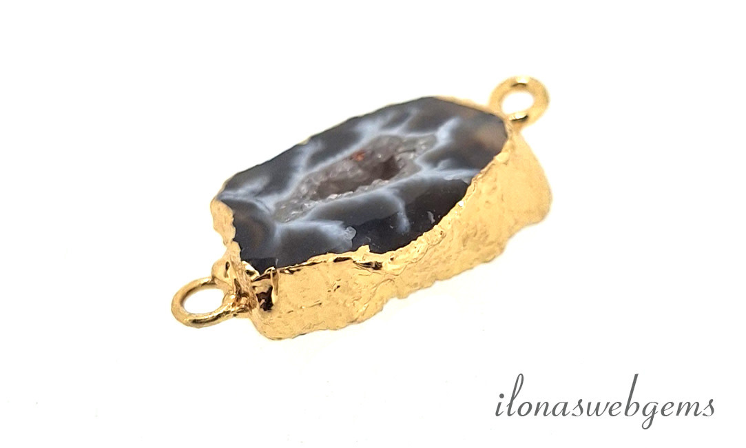 Agaat donker connector premium gold plated ca. 27x16x5mm