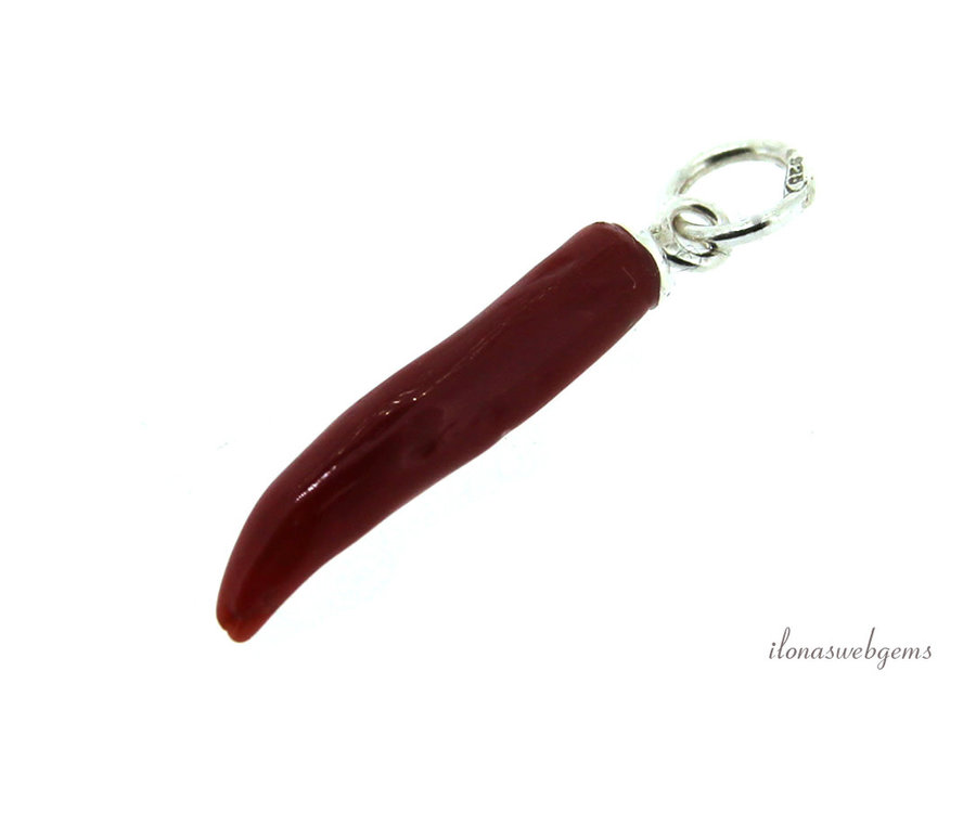 Sterling zilveren Bloedkoraal hoorntje 'Corallium Rubrum' ca. 25mm