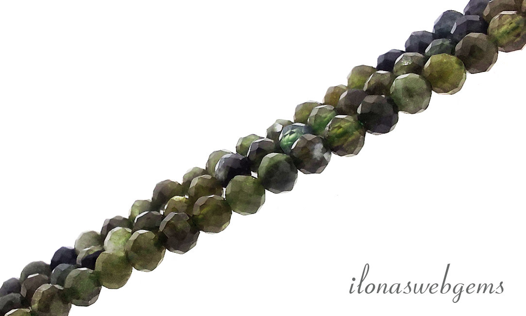Donker groene Toermalijn kralen facet rond ca. 2.5mm