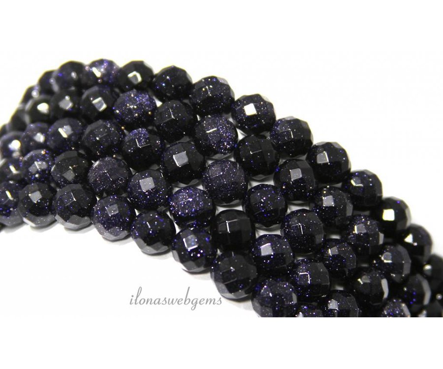 Blauwe Goudsteen kralen facet rond ca. 8mm