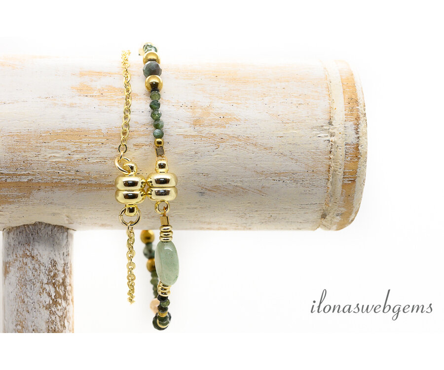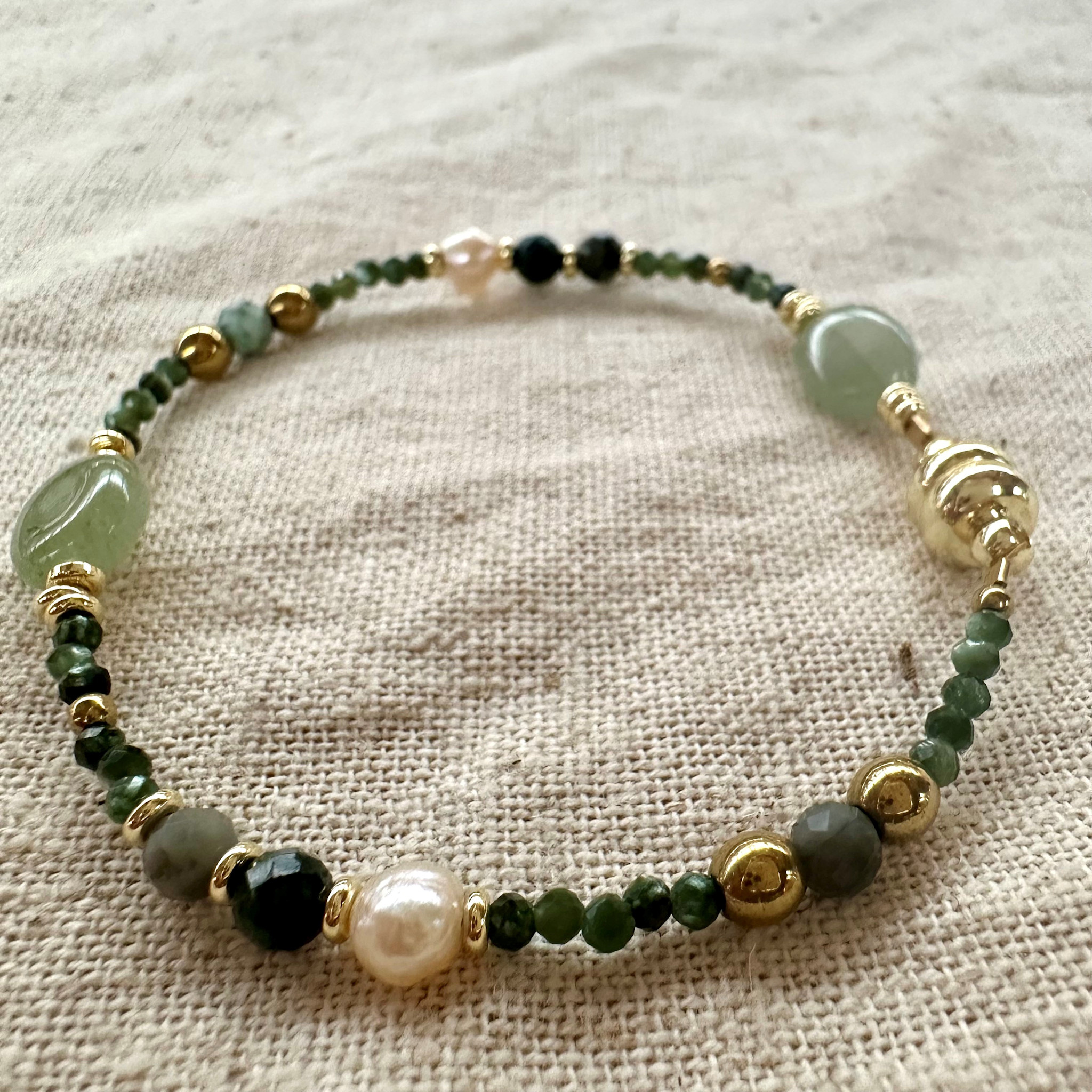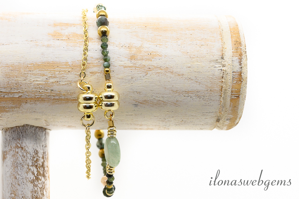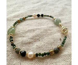 Smaragd, Seraphiniet, Aventurien, Zoetwaterparels met Premium Gold Plated fournituren en een handig magneetslotje