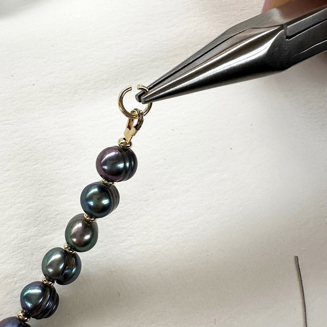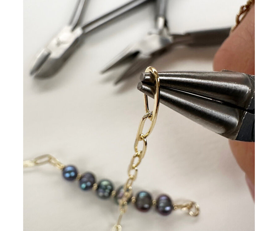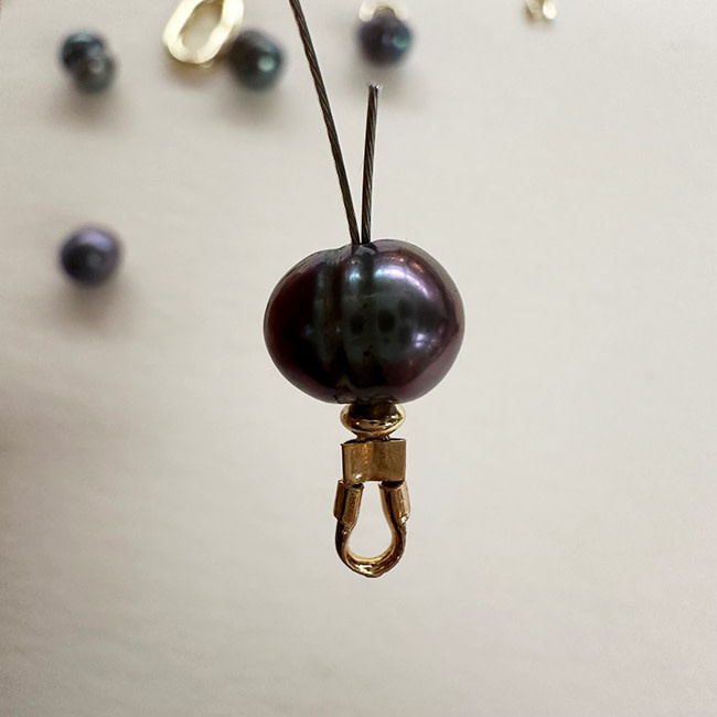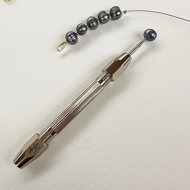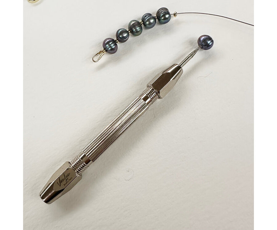 Parels zijn een natuurproduct. Vandaar dat alle vormen wat anders kunnen zijn. Maar ook het rijggat kan wat variëren, vandaar dat we aanraden een 'opruimer' bij de hand te houden. Dit is een simpel tooltje waarmee je met de hand het boorgat voorzichtig wat ruimer kan maken, indien nodig.