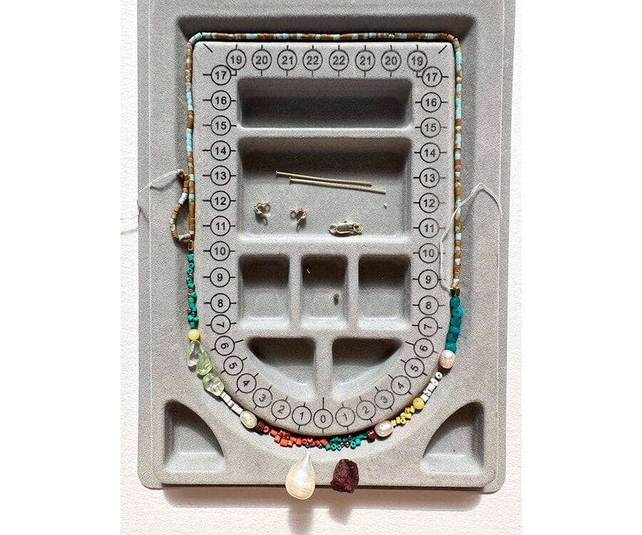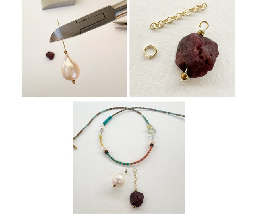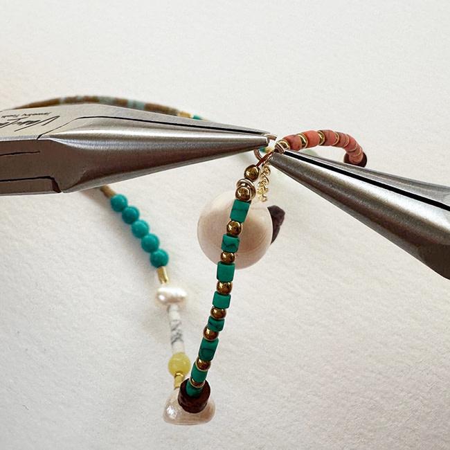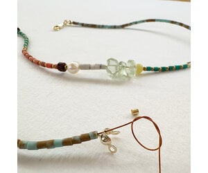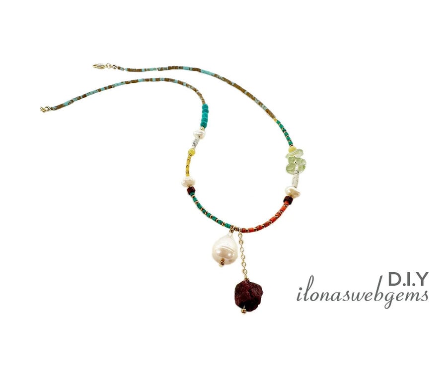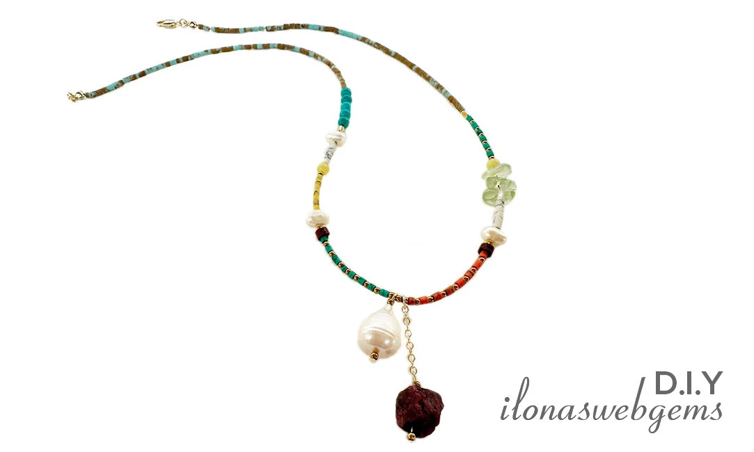 Kleurrijke Tibetaanse Howliet gecombineerd met stijlvolle Parels voor een zomerse beachlook!