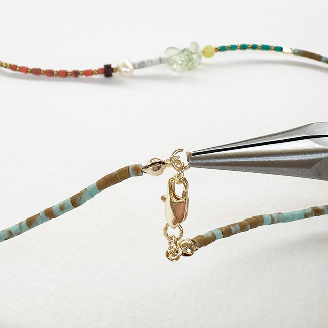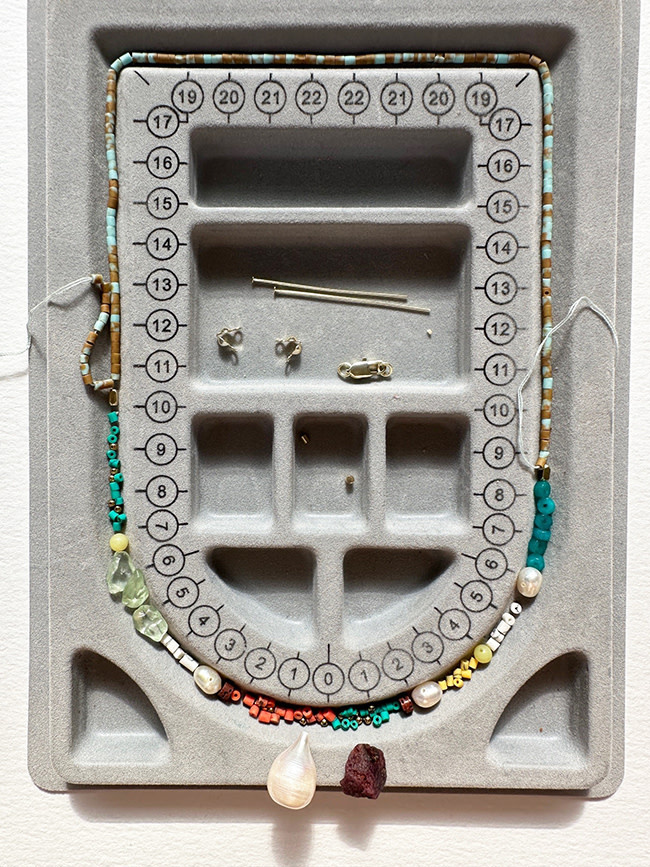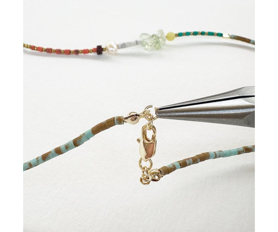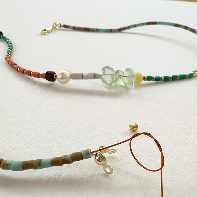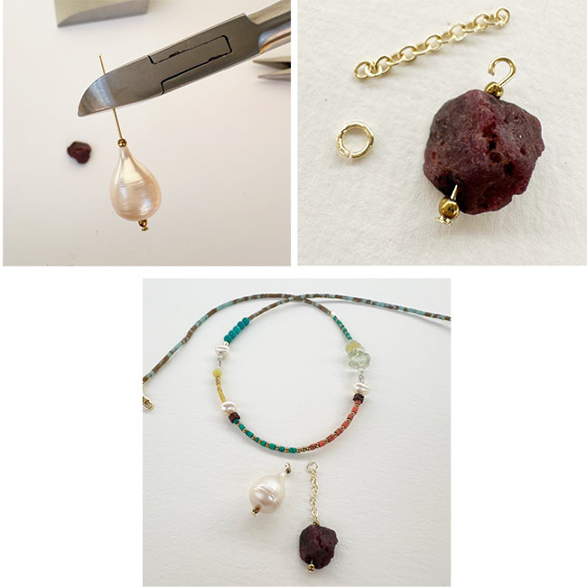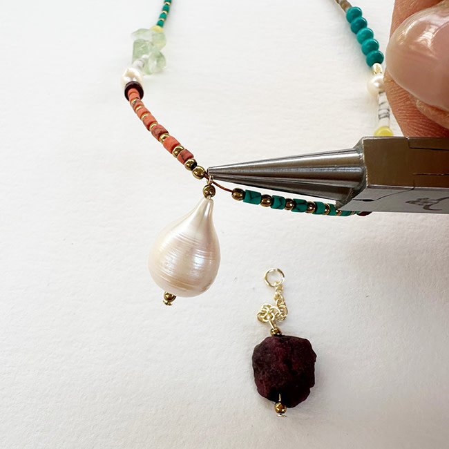 Kleurrijke Tibetaanse Howliet gecombineerd met stijlvolle Parels voor een zomerse beachlook!