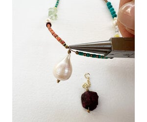 Met een stoere Robijn Rough kraal en een Barokparel als hanger.