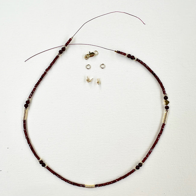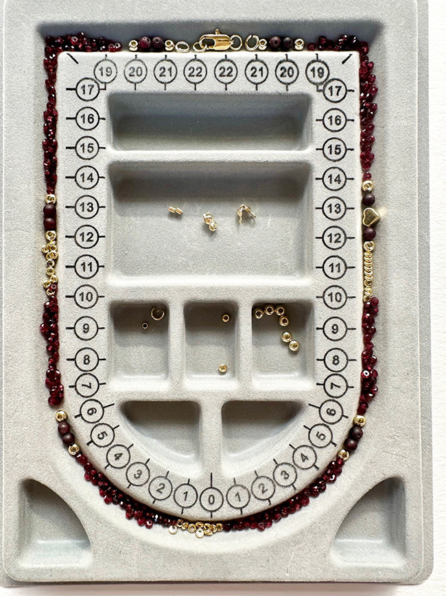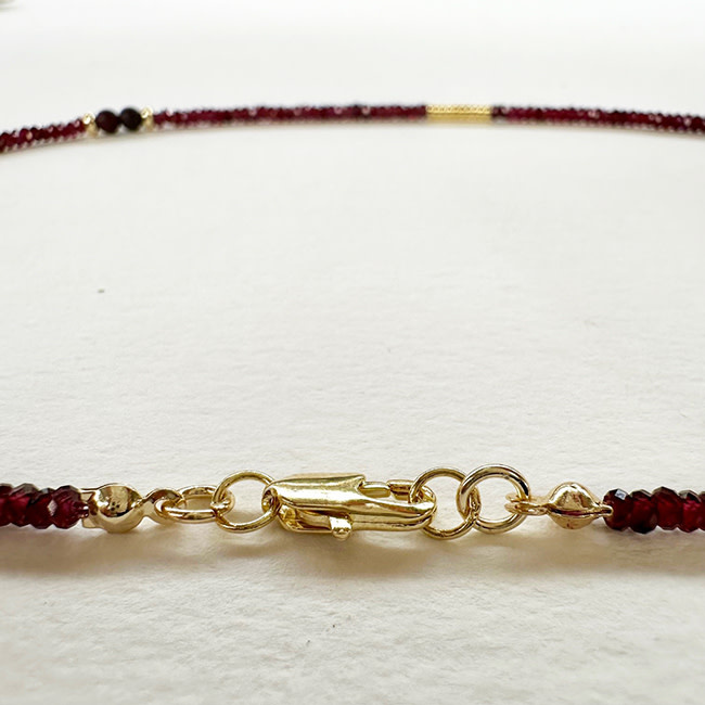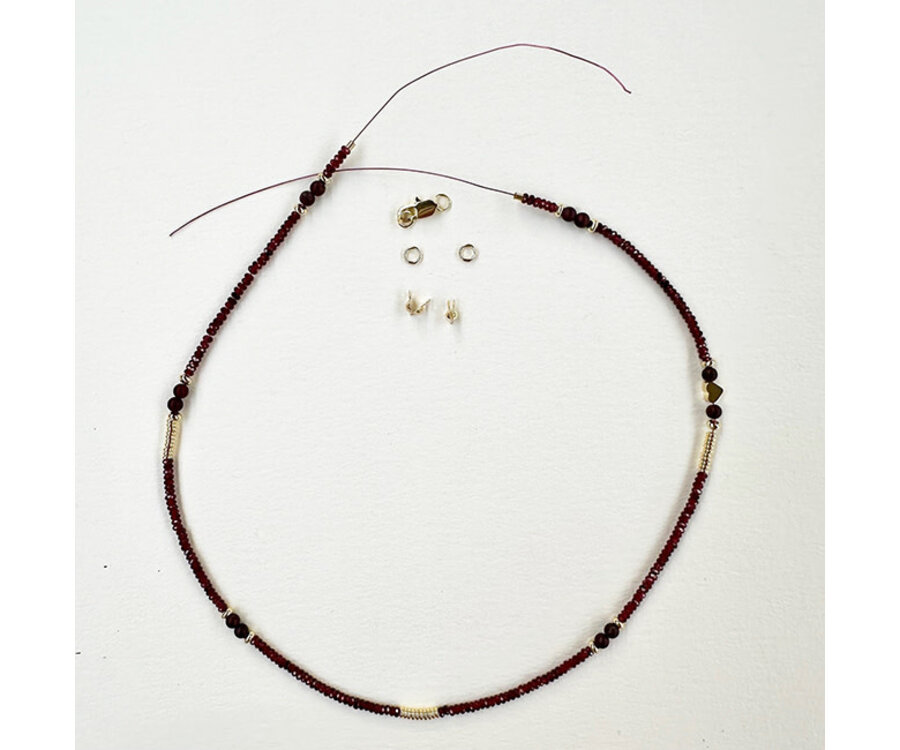Heerlijk rijgen met deze prachtige warme Granaat facet kralen. Check jouw perfecte lengte voor het aanzetten van het slotje. Neem een kopje thee en Njoy het proces.. :-)