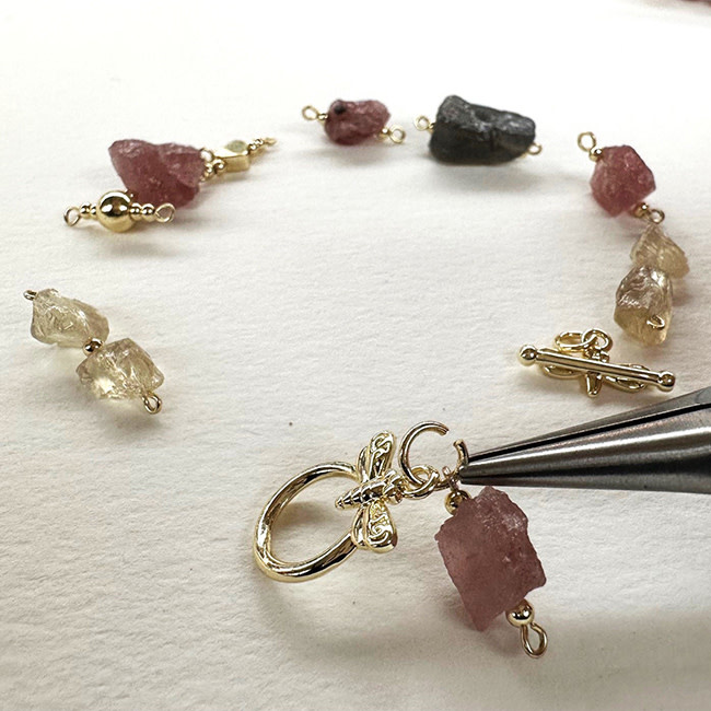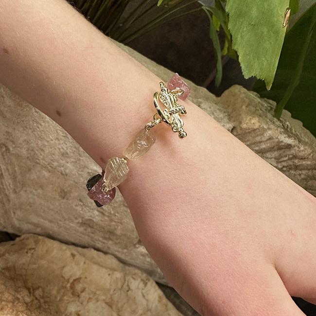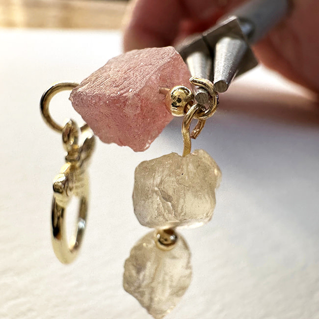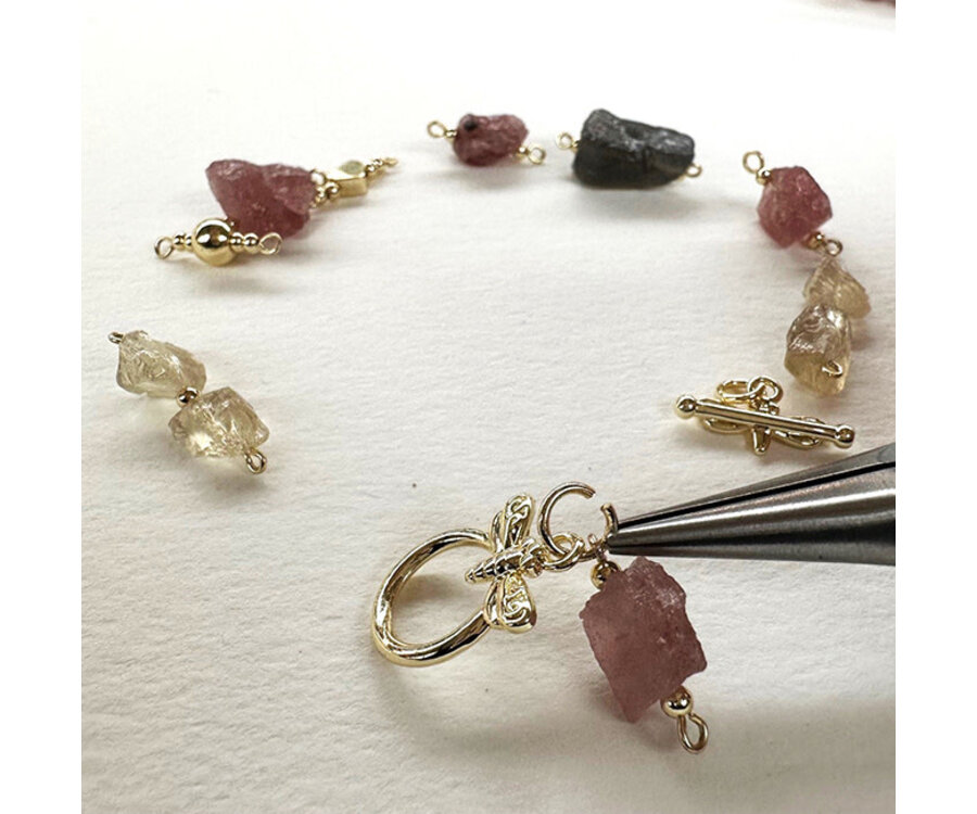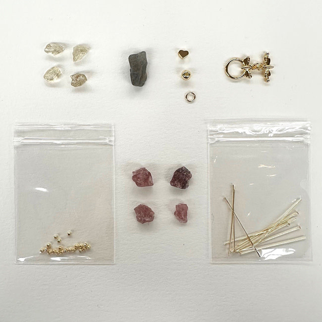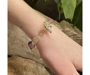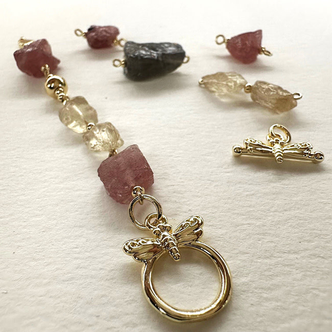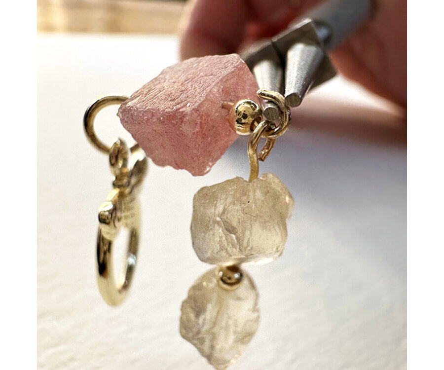 Mix van Aardbeienkwarts, Bergkristal en Labradoriet rough kralen, met Premium Gold Plated fournituren