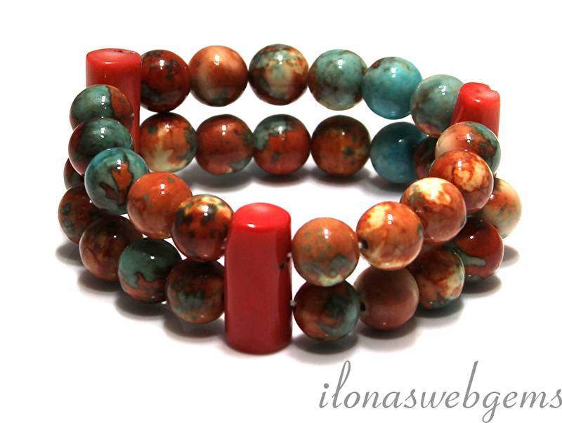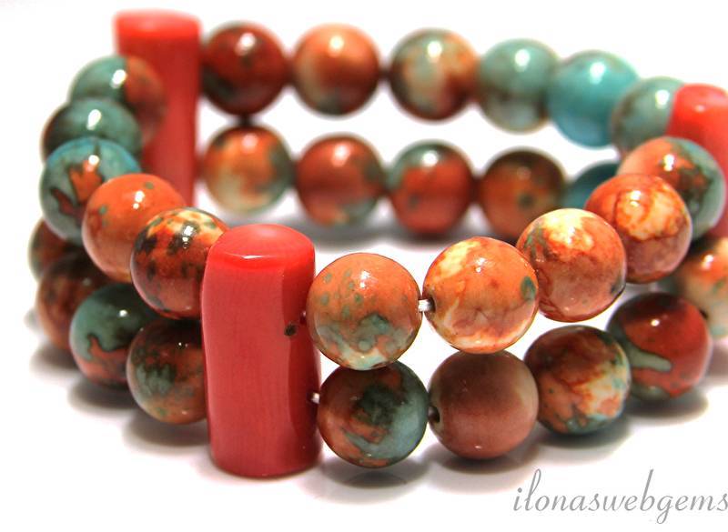 Armband van bijgekleurde Howiet kralen en verdelers voor twee rijen van Koraal