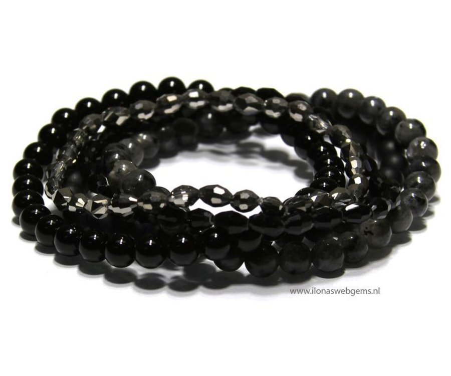 Larvikiet kralen en Onyx kralen edelsteen armbandje en een armbandje in kristal Swarovski style Kijk ook eens hier in onze armbandje rubriek, voor de leukste edelsteenarmbandjes!