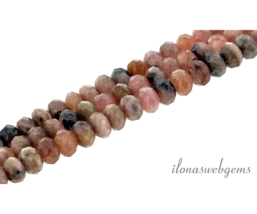 Rhodoniet kralen facet rondel ca. 3x2mm