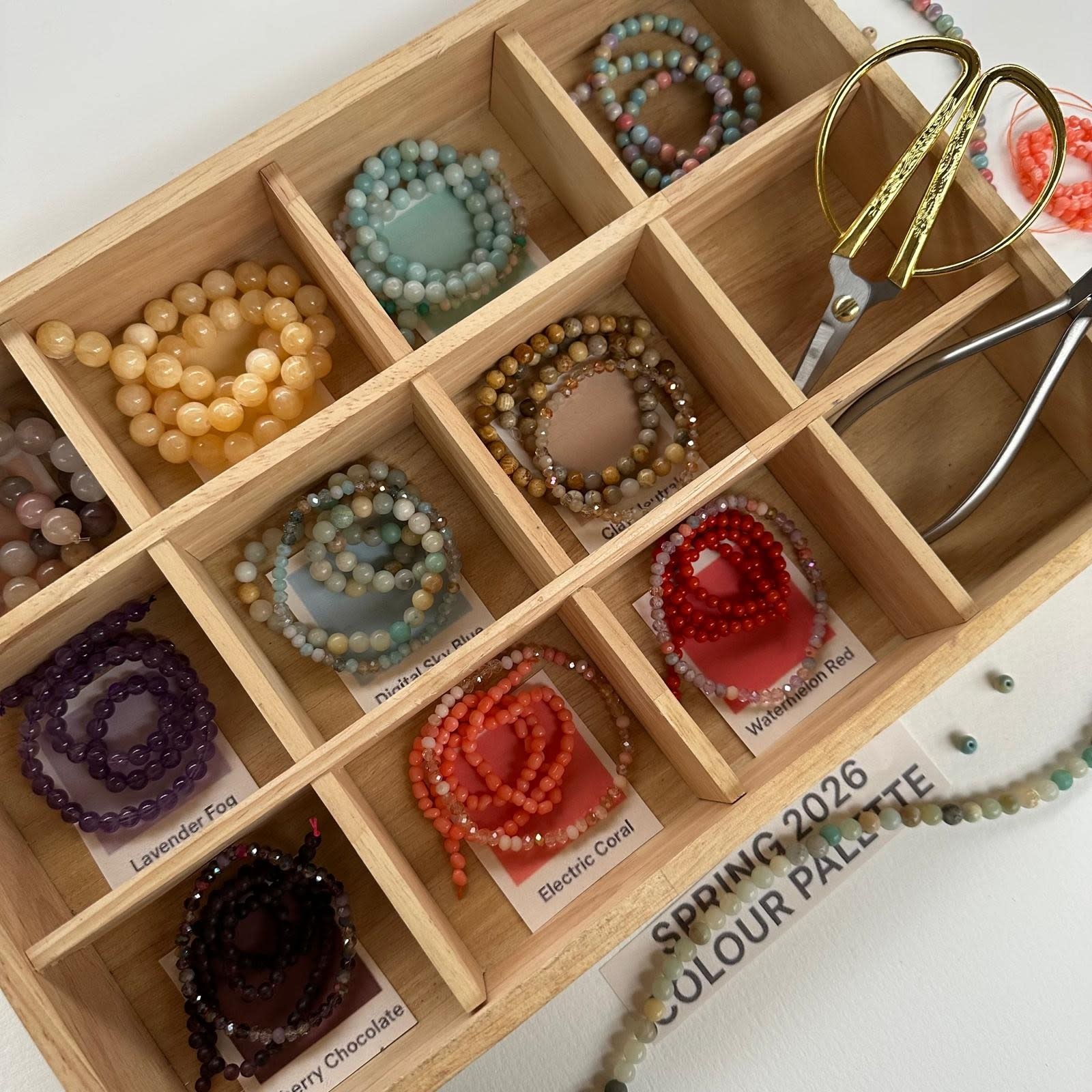 * Een heerlijk fris samengesteld pakket met 10 strengen edelsteenkralen in de nieuwste trendkleuren van dit voorjaar