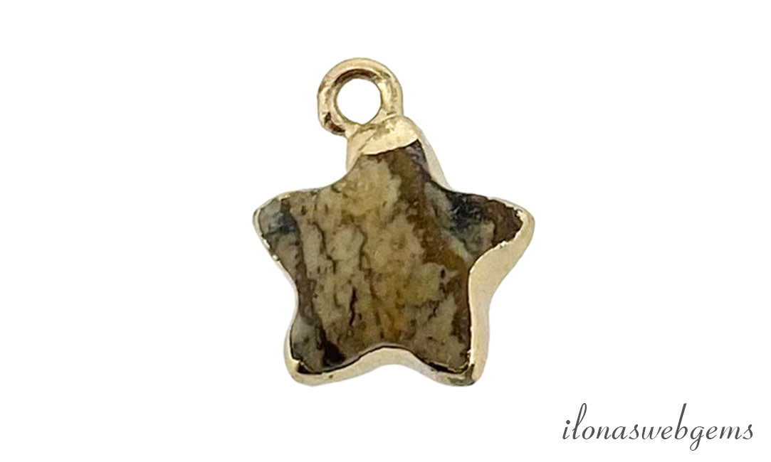 Minimalitisch Vermeil Woestijn Jaspis ster hanger ca. 15x12mm