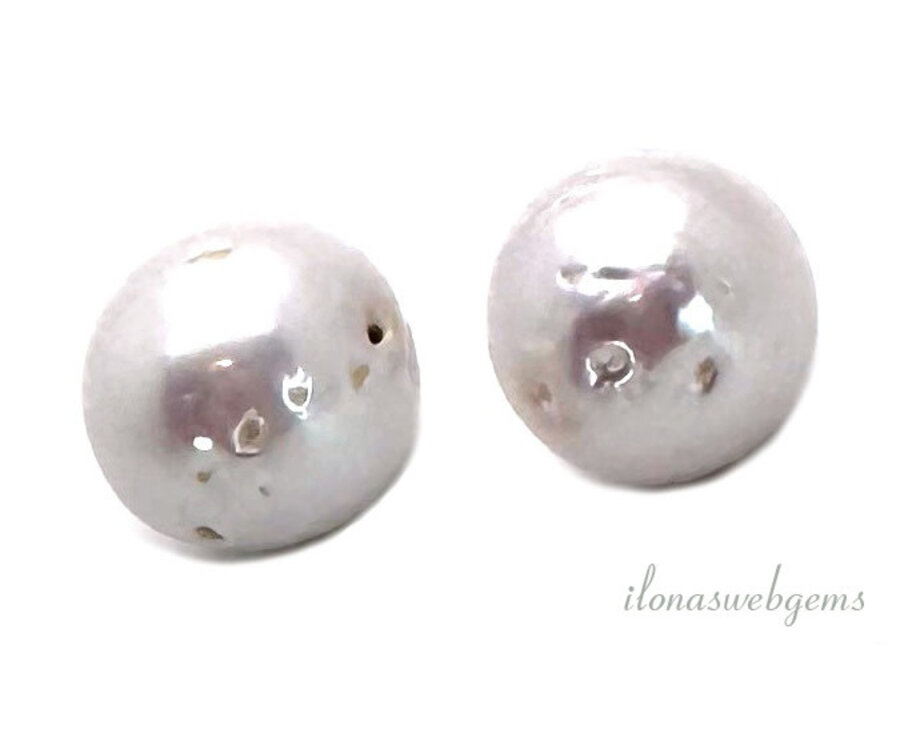 Paartje Zoetwaterparels grote maat rond ca. 14mm (half ingeboord)