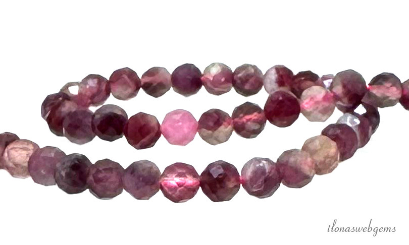 Roze Toermalijn kralen facet rond ca. 4mm