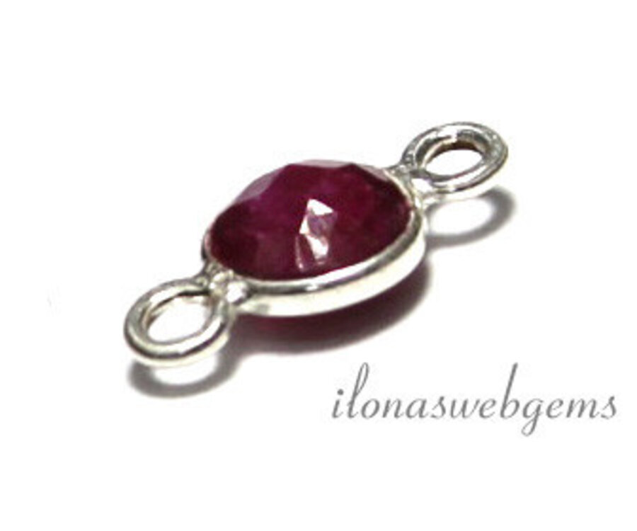 Sterling zilveren connector met Robijn ca. 12x6x3mm