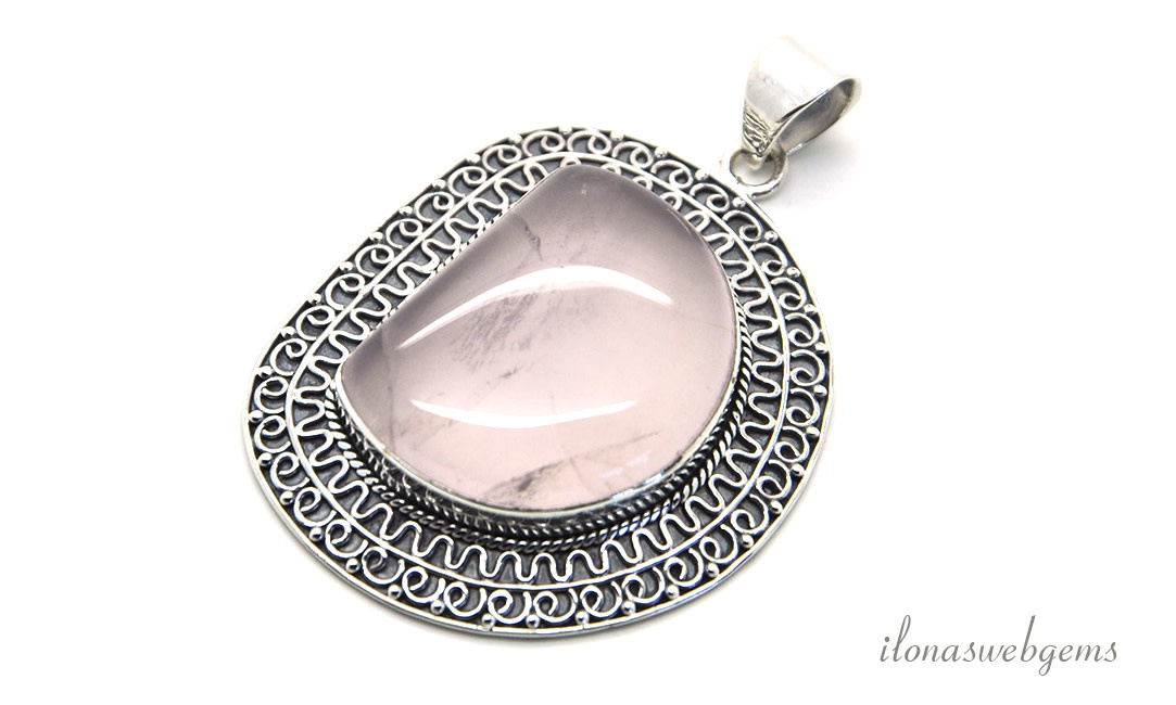 Sterling zilveren hanger Rozenkwarts ca. 43x37mm