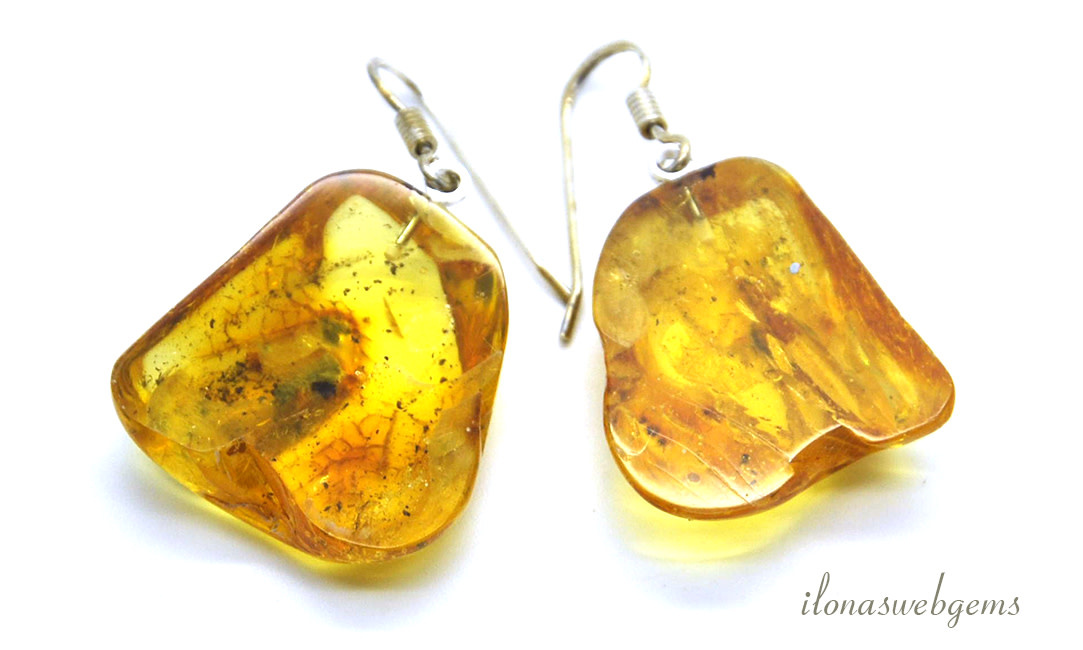 Sterling zilveren oorbellen / hangertjes met Barnsteen ca. 27x22x8mm