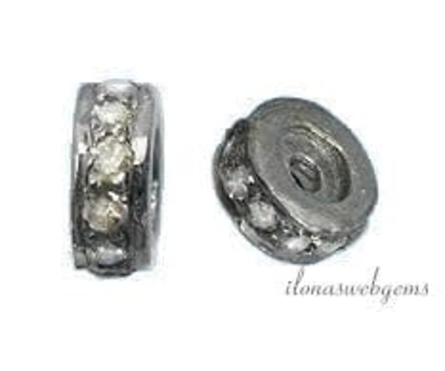 Sterling zilveren rondel met Diamant ca. 6x3mm