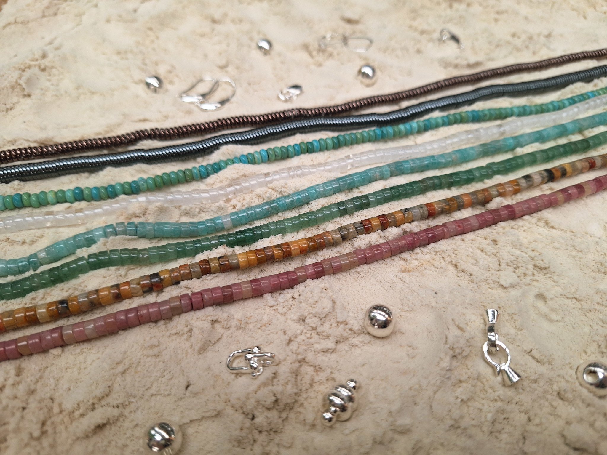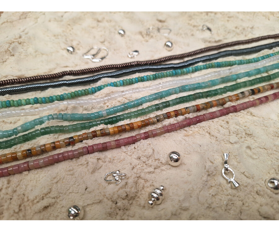 Voor deze editie hebben we gekozen voor een prachtig, harmonieus kleurenpalet met aardse en zomerse tinten die moeiteloos in elkaar overlopen. Denk aan warme, natuurlijke kleuren met een zonnige twist. Echt perfect voor het creëren van sieraden die je meteen in zomerse sferen brengen. We hebben voor deze deal gewerkt met heishi kralen, een absolute must-have in elke kralencollectie!