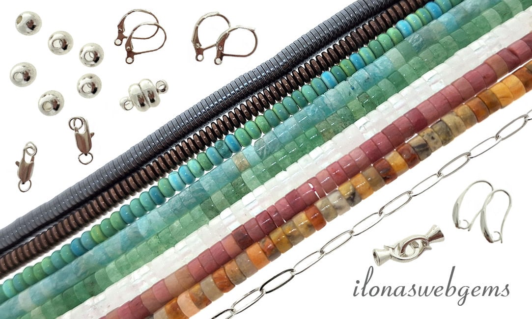 * Edelstenen zoals: Agaat rondel, Amazoniet rondel, Aventurijn rondel