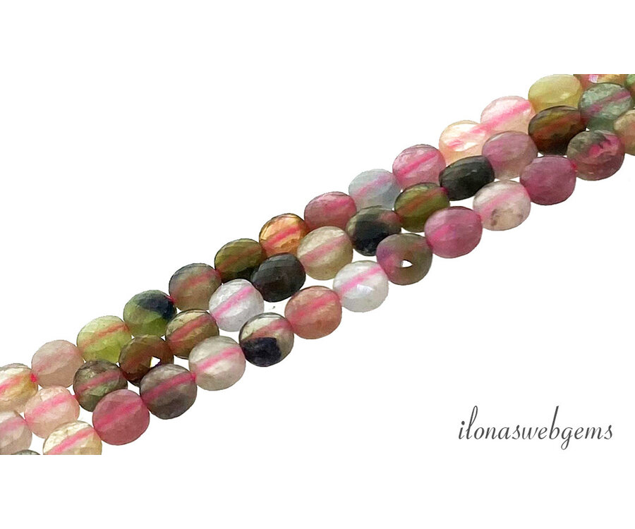 Toermalijn kralen facet coin ca. 4x2mm