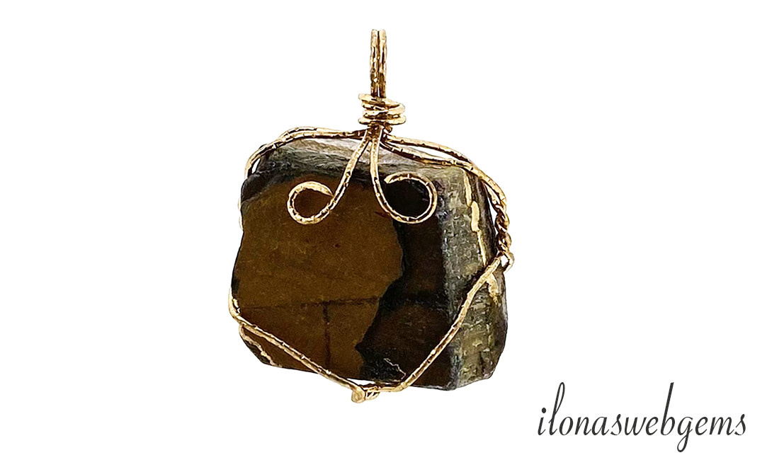Goudkleur wire hanger Tijgeroog ca. 42x25mm