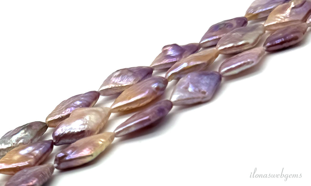 Zoetwaterparel wiebertjes lila-zalm ca. 16x9mm